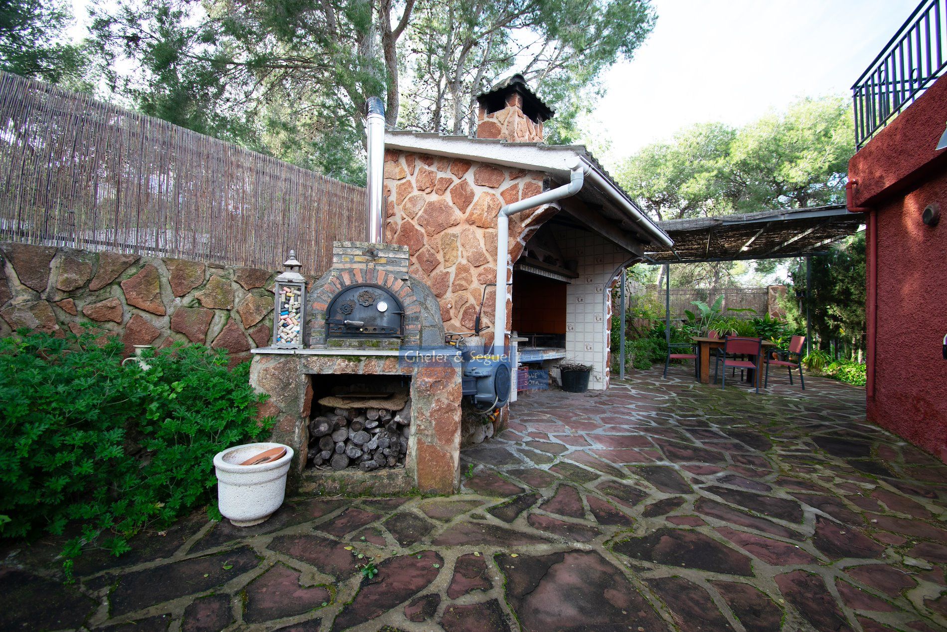 La casa se emplaza en la ladera del monte y se encuentra protegida por la pinada que hace que tanto la casa como sus exteriores, incluyendo la piscina, zona de paellero y horno estén fuera del alcance de las miradas de vecinos y pasantes.