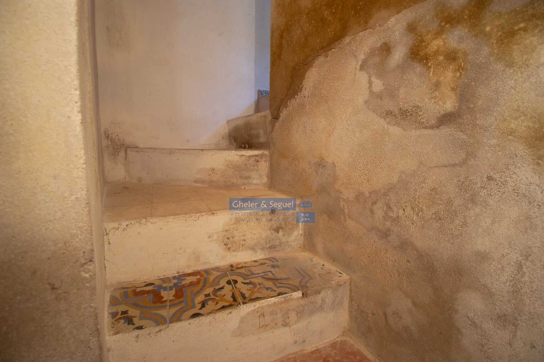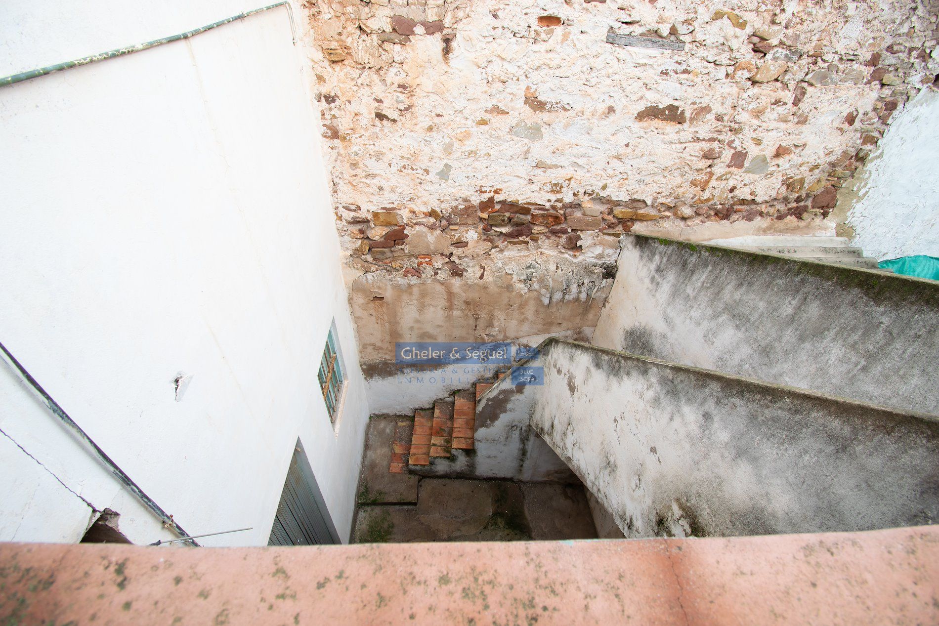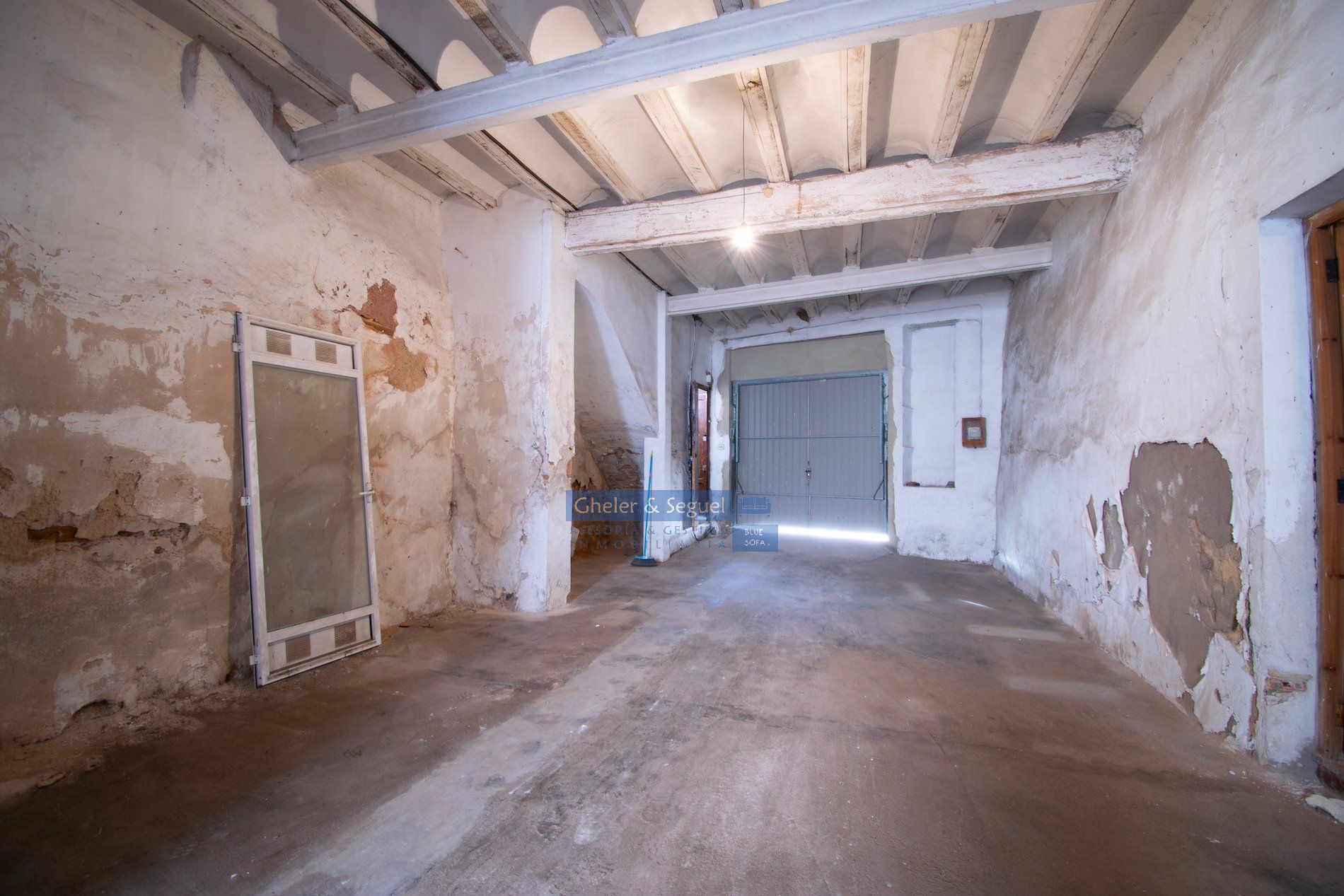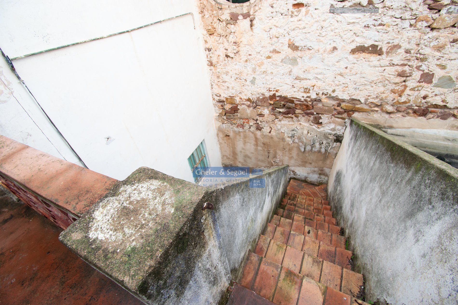 Next to and connected with the garage, a staircase leads to the upper floor. Upon reaching this level, you find an entrance hall that distributes the main rooms: a living-dining room, a double bedroom with balcony, a single bedroom, and an interior room without a window that could be used as an office, dressing room, or for other purposes. On this same floor, there is a kitchen and a bathroom, both requiring complete renovation, with direct access from the hallway to a rear terrace.